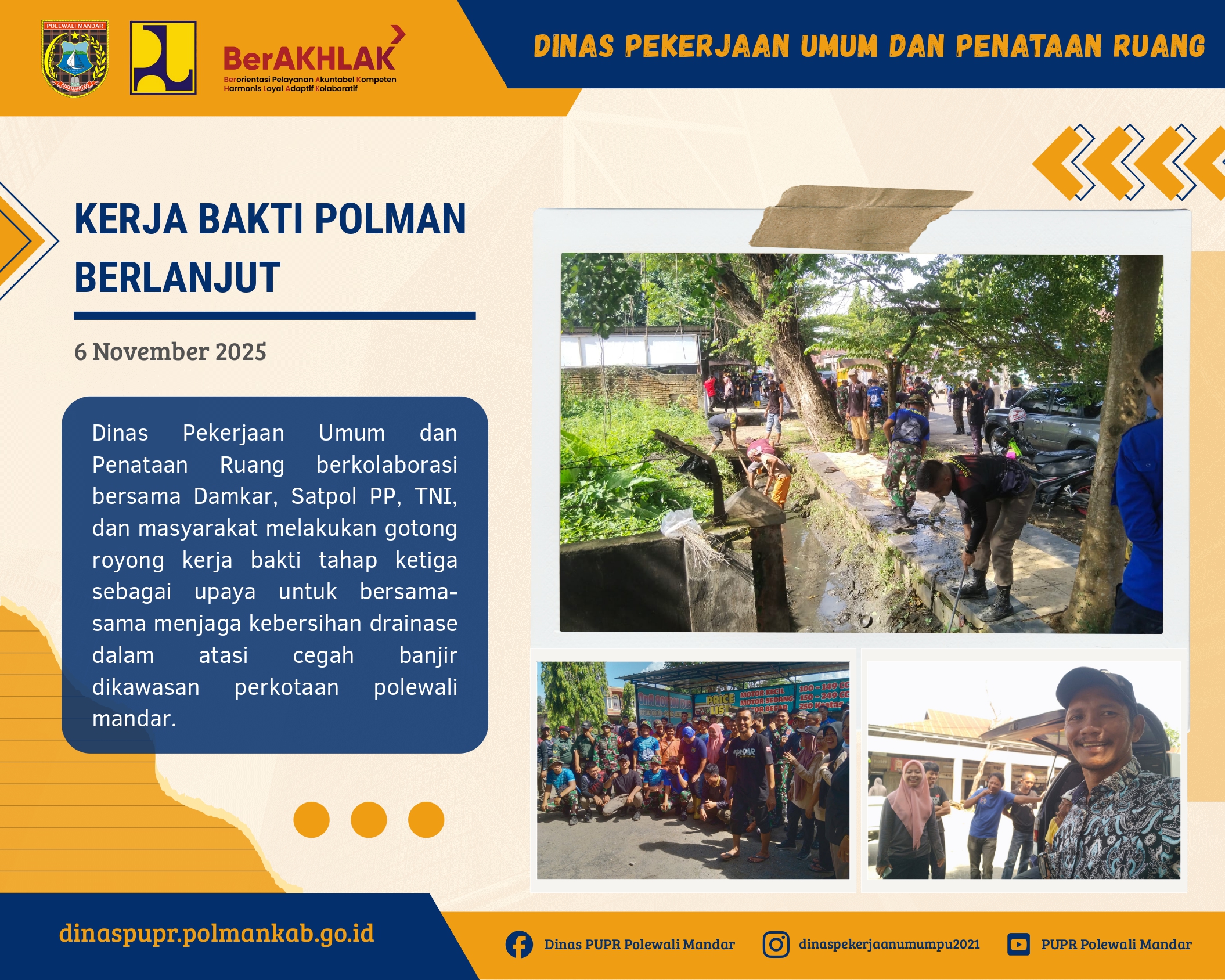 Dinas PUPR, Bersemangat Kolaborasi Lintas Instansi Gotong Royong Bersihkan Saluran Air di Kawasan MadattePOLEWALI MANDAR, Dalam rangka menjaga kebersihan lingkungan sekaligus mengatasi persoalan ba...