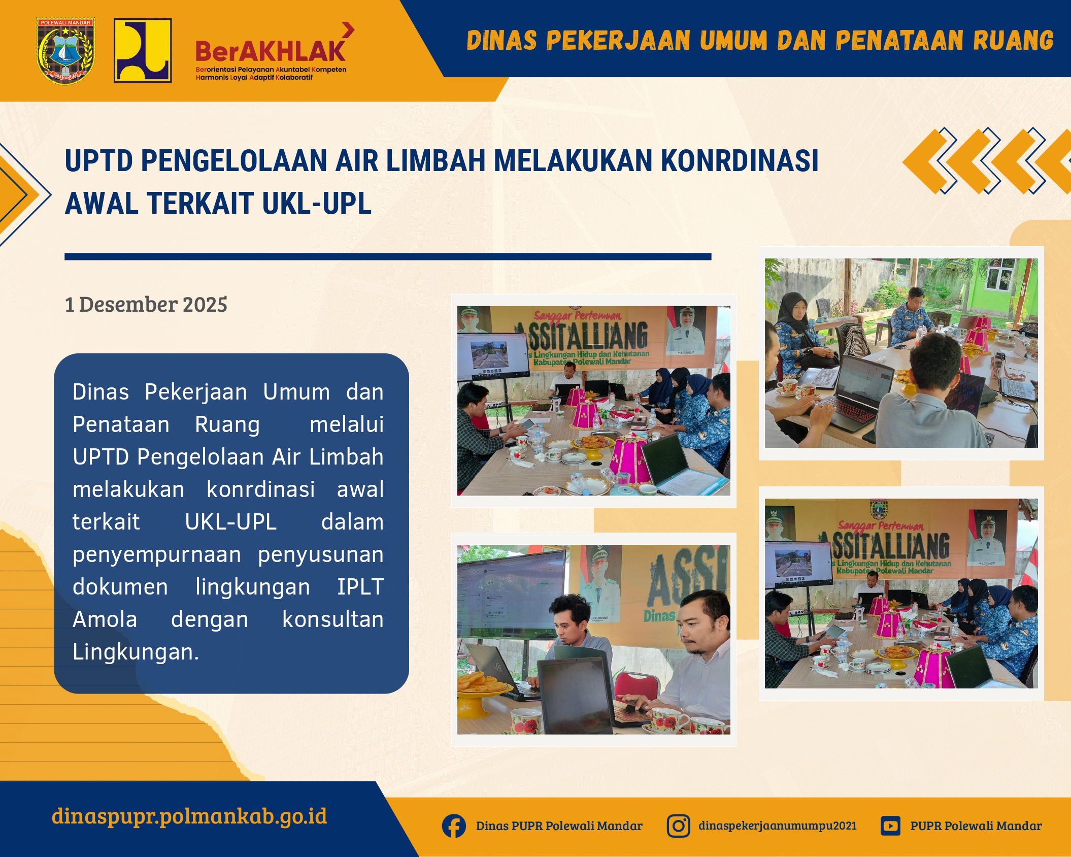 Polewali Mandar, Dinas Pekerjaan Umum dan Penataan Ruang (DPUPR) Kabupaten Polewali Mandar mengirimkan tim perwakilan untuk mengikuti kegiatan Bimtek Pendampingan Aplikasi Halo Assami yang diselen...