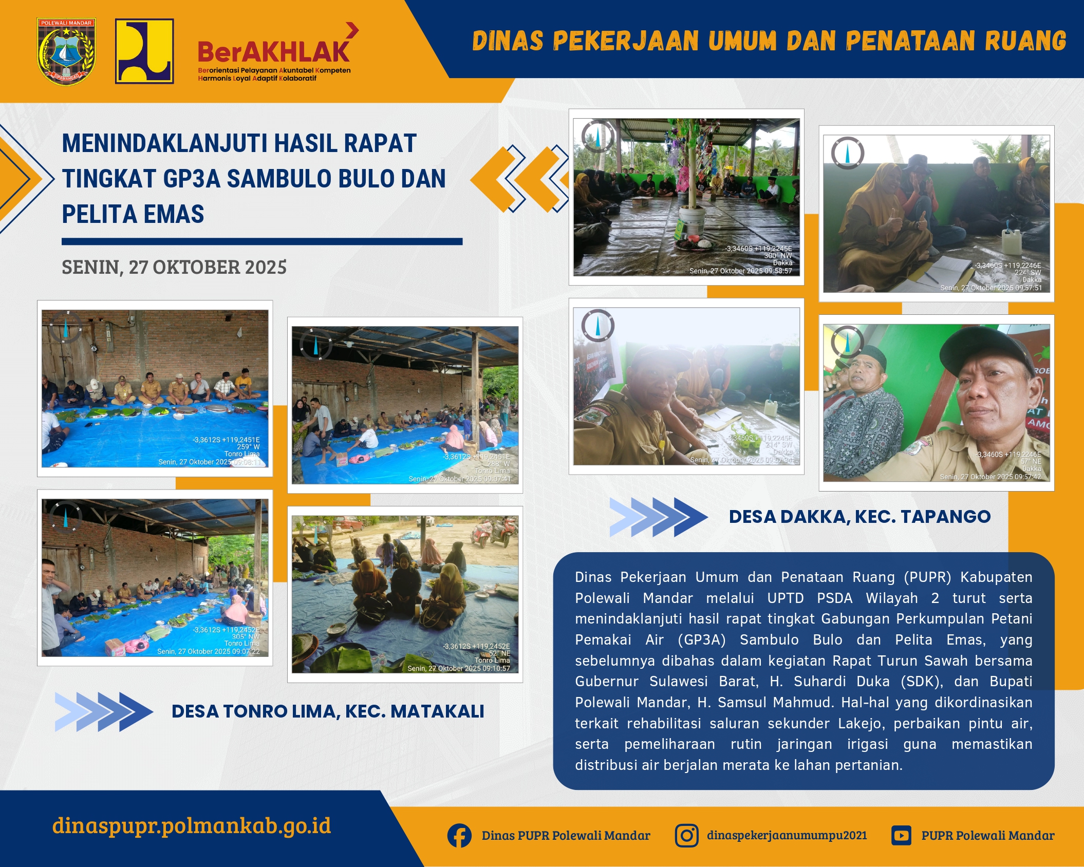 Polewali Mandar, Dinas Pekerjaan Umum dan Penataan Ruang (PUPR) Kabupaten Polewali Mandar turut berpartisipasi dalam kegiatan Rapat Turun Sawah yang dihadiri secara langsung oleh Gubernur Sulawesi ...